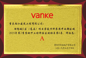 万科中西部区域2019年第二季度地下工程评估区域第六名